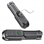 This flashlight is equipped with a non-slip handle that ensures a secure grip and comfort even during intensive outdoor activities. The USB charging option eliminates the need to change batteries, making it environmentally and economically advantageous with a battery status indicator that alerts you when charging is required.