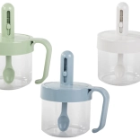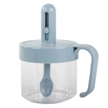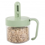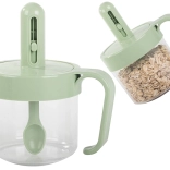 This compact jar made of durable plastic is designed for everyday use in the kitchen and pantry. The practical lid with a built-in pull-out spoon and slider helps you measure exact amounts without extra tools. The airtight closure protects the contents from moisture and ensures longer-lasting freshness.