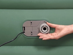 The mattress is equipped with a built-in electric pump, allowing inflation in just 3 minutes. If needed, it can also be inflated using a manual pump, which is practical for places without access to electricity.