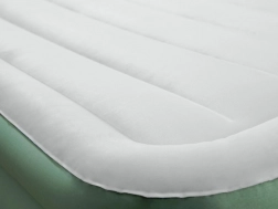 The top surface of the mattress is covered with a soft, fleecy material, which is pleasant to the touch yet durable against wear. The Tough Guard Fortech material combines the flexibility of PVC with the durability of fabric.