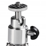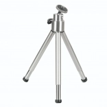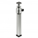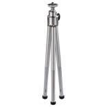 A compact, lightweight mini tripod in an elegant silver color offering exceptional portability and a stable support for cameras, camcorders, microphones, and mini speakers. Thanks to its durable metal construction and non-slip feet, it ensures a sharp image without blur even on uneven surfaces.