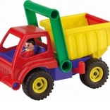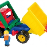 The bed features a practical lock against accidental tipping, and the cab tilts easily – inside, an active figure is ready to work. The toy develops fine motor skills, coordination, and role-play scenarios.