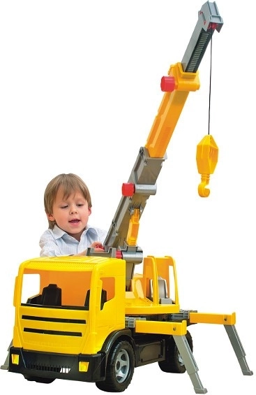 A robust kids’ crane truck from LENA delights little builders with realistic functions and a durable build. It is fully mechanical, featuring a 270° rotating boom, extendable stabilizer legs, and a winch with hook for lifting loads. When fully extended, the crane reaches an impressive length up to 115 cm, and thanks to the high-quality plastic it can handle plenty of imaginative play.
