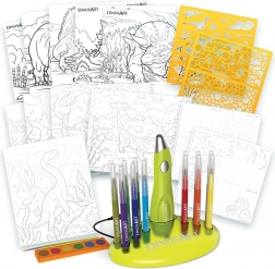 Discover the world of dinosaurs with this great DinosArt airbrush coloring set. This set offers everything you need to create amazing and colorful artworks: