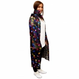 A stylish cape for little wizards and witches made from glossy material with a colorful pumpkin print. It features a comfortable collar and a neck tie fastening for easy wear. The 120 cm length is ideal for kids’ costumes for carnivals, Halloween, and themed parties.