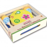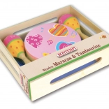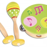 A music set for little musicians brings fun, rhythm development, and fine motor skills. It includes 2 wooden maracas and a tambourine with 8 jingles – ideal for first musical attempts and home performances.