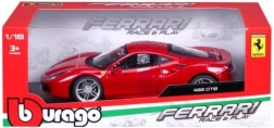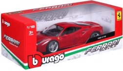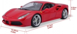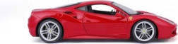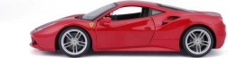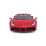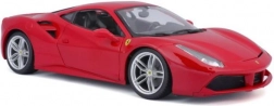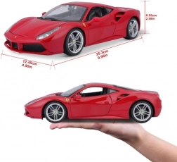 Detailed rendition of the red Ferrari 488 GTB with authentic proportions, logos, and sporty wheels in 1:18 scale.