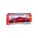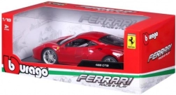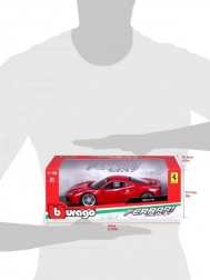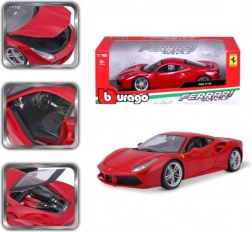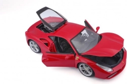The Bburago model faithfully captures the dynamic lines and details of the Ferrari 488 GTB in elegant red. Thanks to the metal body, precise paintwork, and realistic wheels, it looks like a real car in miniature. Opening doors, hood, and engine cover let you peek into the refined interior and engine bay.
