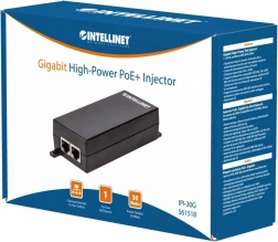 Gigabit PoE+ Injector by Intellinet provides easy power supply and connectivity for various devices such as wireless access points, IP phones, and cameras, through a single RJ45 port.