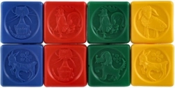 Set of eight colorful plastic blocks with animal motifs that develop children's motor skills and imagination. This educational toy will thrill all little boys and girls.