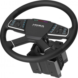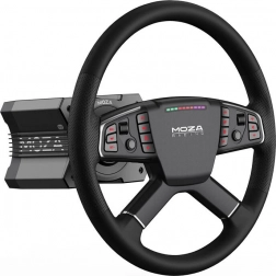 Introducing the Moza TSW RS060 steering wheel, specially designed for truck simulator enthusiasts. This unique wheel combines a luxurious look with top-tier functionality to deliver a realistic driving experience. Its classic four-spoke design, inspired by real 400 mm truck wheels, features modern details and chrome accents.