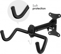 The holder is mounted to the wall using four included wall plugs, and after taking the bike down it can be easily folded away so it doesn’t get in the way. The hooks are coated with a protective layer that shields the bike frame from scratches. The holder length can also be adjusted as needed.