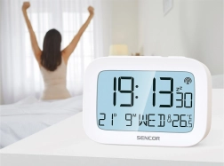 The Sencor digital alarm clock brings modern design and functionality to every bedroom or office. The large display ensures easy readability of time, date, and temperature. Radio-controlled time management DCF77 ensures accurate time without the need for manual setting.