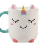 The mug features a beautifully crafted unicorn look with ears, a rainbow horn, and painted details that will brighten any space.