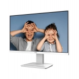 The monitor features a sleek white frame and stand that fit perfectly into modern office and home spaces.