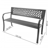An elegant garden bench in graphite is ideal for the garden, terrace, and balcony. It features a sturdy metal frame made of steel and cast iron, weather resistance, and an ergonomic backrest for comfortable relaxation. Non-slip foot caps enhance stability, and the timeless open (lattice) design adds style to your space.
