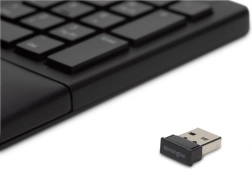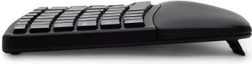 Ergonomic wireless keyboard designed to provide a comfortable hand position while working on a computer. Thanks to the split and properly angled surface with adjustable tilt and an integrated wrist rest, the keyboard ensures a natural hand position.
