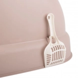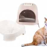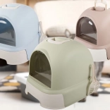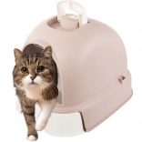 Practical enclosed cat litter box with a pull-out tray for easy cleaning and a built-in carbon filter. Thanks to the transparent flap door, wide entrance, and ergonomic handle, it offers comfort for both pet and owner while reducing litter tracking and capturing odors.