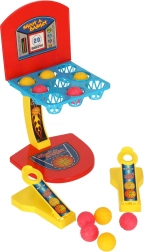 Fun tabletop mini basketball game for 2 players with a spring‑loaded catapult and 10 balls. Practice aiming and coordination and enjoy family fun in a compact 25 × 11 cm format made of durable plastic.