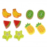 The game develops key skills: fine motor skills, coordination, spatial imagination, and logical reasoning. The varied fruit colors support learning colors and sorting.