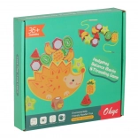 A cute wooden hedgehog with colorful fruit blocks offers two games in one: stringing fruit on a lace and balancing stacking on the hedgehog’s back. It supports fine motor skills, logical thinking, and hand–eye coordination. High-quality smoothly sanded wood and rich colors invite long and meaningful play.