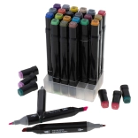 The compact zippered fabric case and plastic stand keep markers neatly organized and always at hand – perfect for the studio, school, or travel.