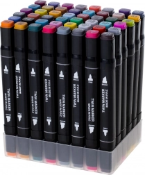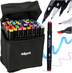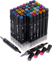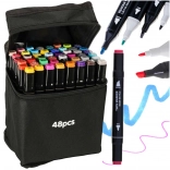 Discover the joy of color with this versatile set of 48 alcohol markers. Two tips on each marker — a wide chisel for filling larger areas and a fine tip for detailed lines — give you the freedom to create illustrations, sketches, comics, and lettering.