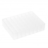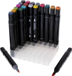 The plastic stand with compartments keeps all markers within reach and neatly arranged during and after work.