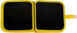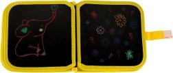A fun and practical kids’ book with black chalkboard pages and a colorful bear-themed cover. Thanks to the hook-and-loop closure and compact size, it’s ideal for travel. The set includes 12 chalk markers and 2 cloths for easy wiping. The water-resistant material is easy to clean and the reusable pages foster creativity and fine motor skills.