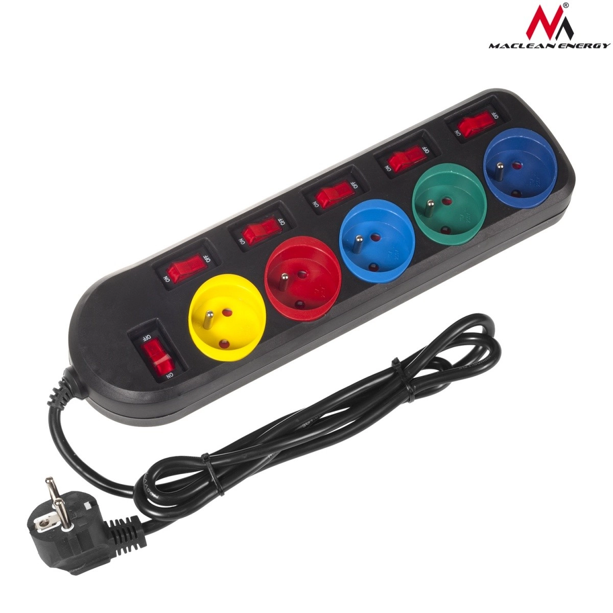 The extension cord with 5 sockets allows you to connect up to five devices simultaneously. It features a child safety lock and individual switches for each socket.