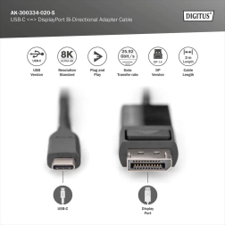 Digitus Bidirectional USB Type C to DisplayPort Adapter 8K 2m