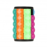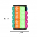 A smart and fun logic puzzle in the shape of a cylinder with five rows that challenges the brain and calms the mind. Rotate the rings and rearrange the colored pieces so that you align the colors in a single row. The game develops logical thinking, fine motor skills, and is great for stress relief.