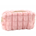 Elegant and soft to the touch, this plush cosmetic bag is an ideal accessory for daily use. Made from a soft, plush material in a gentle pink color, it not only pleases the eye but also boasts great practicality. Its modern design perfectly matches current trends and features a shiny zipper and a decorative handle in a rose-gold color.