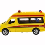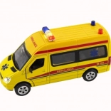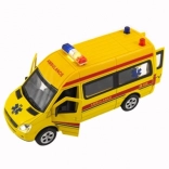 This finely detailed ambulance combines a sturdy metal chassis with durable plastic parts and is ideal for creative play. With its pull-back drive, it moves without remote control, while the opening front and rear doors enhance authenticity and interactivity.