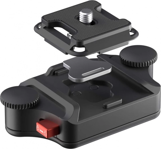 Enjoy a double safety system that protects against accidental unlocking, whether you are on a hike, expedition, or dynamic shooting. This system is made from a durable aluminum alloy and weighs only 125 grams, yet can carry up to 15 kg of equipment. It is compatible with devices with a 1/4-inch thread and straps of 1 to 8 mm thickness and up to 60 mm width. This means it easily fits most backpacks, belts, and bags.