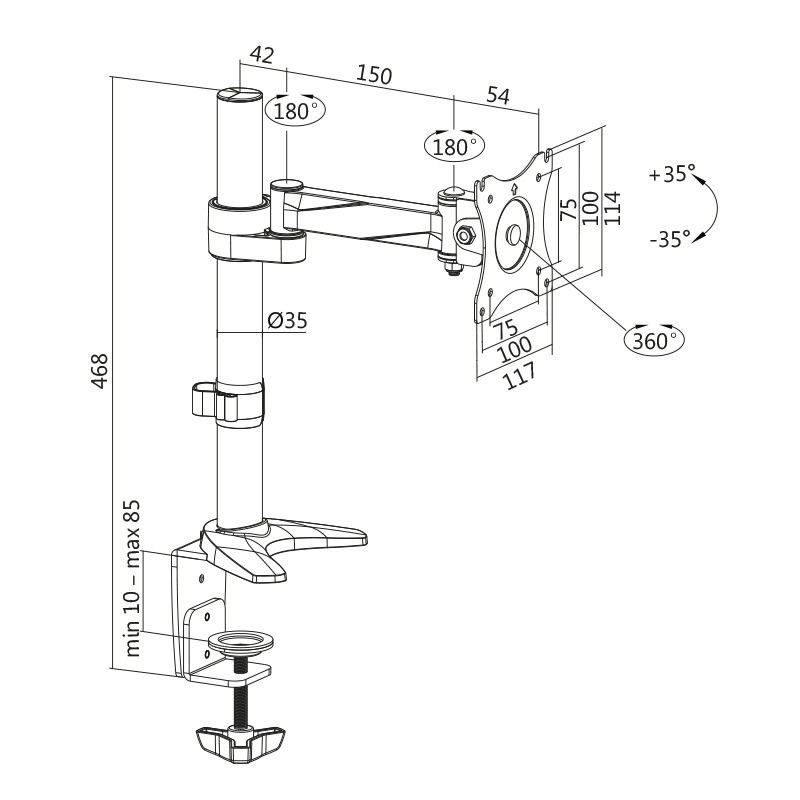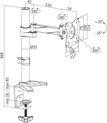 Our adjustable monitor stand is the ideal solution for both workplace and home, where saving space and ensuring proper ergonomics is crucial. It mounts directly to the desktop, allowing you to set the height and angle of the monitor.