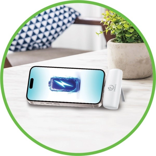 - Direct connection to your phone – forget about cables! The powerbank connects directly to your device via USB-C.