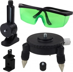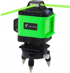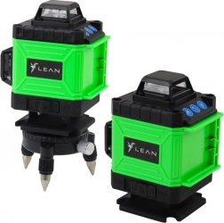 This laser level features four projection windows that generate 16 laser lines, ensuring complete 360° coverage in three planes. It allows you to set the number of displayed lines (4/8/12/16) and is equipped with a self-leveling function within a range of up to 3°. If this value is exceeded, an audio and light alarm is activated.
