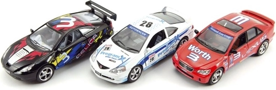 The metal and plastic combo ensures durability and an authentic look. Racing decals, spoilers, and numbers make these cars attractive collector pieces.