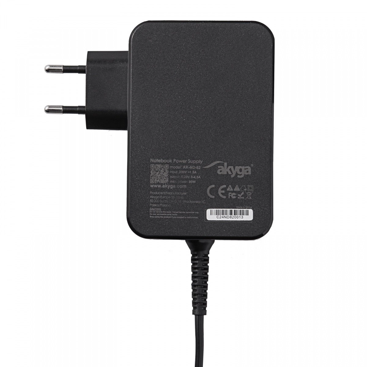 The Akyga AK-ND-82 universal charger brings the possibility of dynamic adjustment of power to the needs of the connected device. The charger can deliver voltage ranging from 5 to 20 V and current from 3 to 4.5 A, ensuring fast and safe charging even for the most demanding devices.
