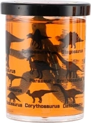 Each cup hides tiny dinosaurs and features prints with their silhouettes and names—fun and learning in one.