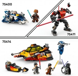 Includes the first LEGO Star Wars minifigures of these characters: Sig Greebling, Darth Dev, and Solitus. Each comes with a lightsaber; Solitus additionally has a double-bladed saber with chain and a STAP platform for dynamic duels.