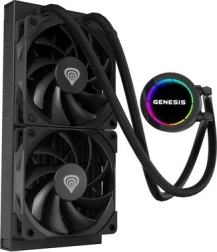 GENESIS Hydria 240 is a powerful and stylish AIO liquid cooler for gamers, creators, and demanding users. It offers a three-phase pump for quiet operation, optional ARGB lighting with one-click shutdown, and broad compatibility with Intel and AMD sockets. Thanks to the compact pump-block, flexible braided tubes, and easy installation with three connectors, you get reliable cooling with long lifespan and great looks.