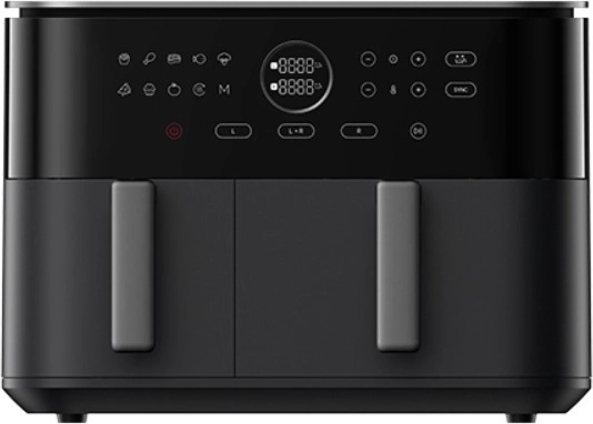 Two zones, large 10 L capacity – a 3.5 L left basket for sides and a 6.5 L right basket for mains (fits a whole chicken). With separate heating elements and the included grill rack, you can prepare 3 courses simultaneously without compromise.