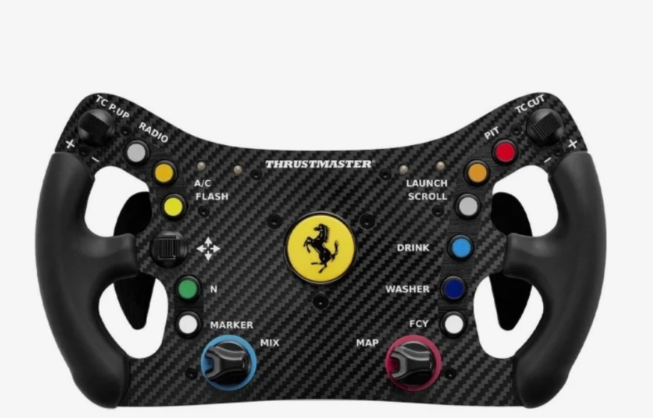 You get 11 action buttons, a d‑pad, 2 rotary encoders, and 2 thumb encoders — all laid out for quick inputs while driving. The top 4 LEDs indicate, for example, engine RPM or pit window, and offer GT and single‑seater modes for optimal tailoring to different cars.