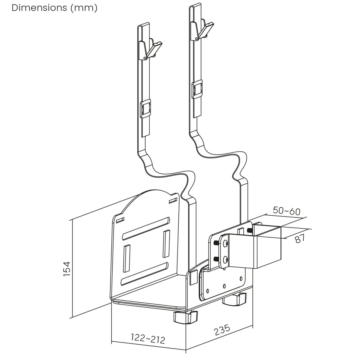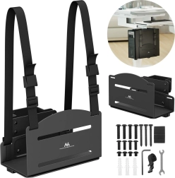 Free up the space under your desk and protect your hardware from dust and impacts. This black PC holder allows wall or vertical post mounting, giving you better access to ports and cables while keeping your workspace clean and ergonomic.
