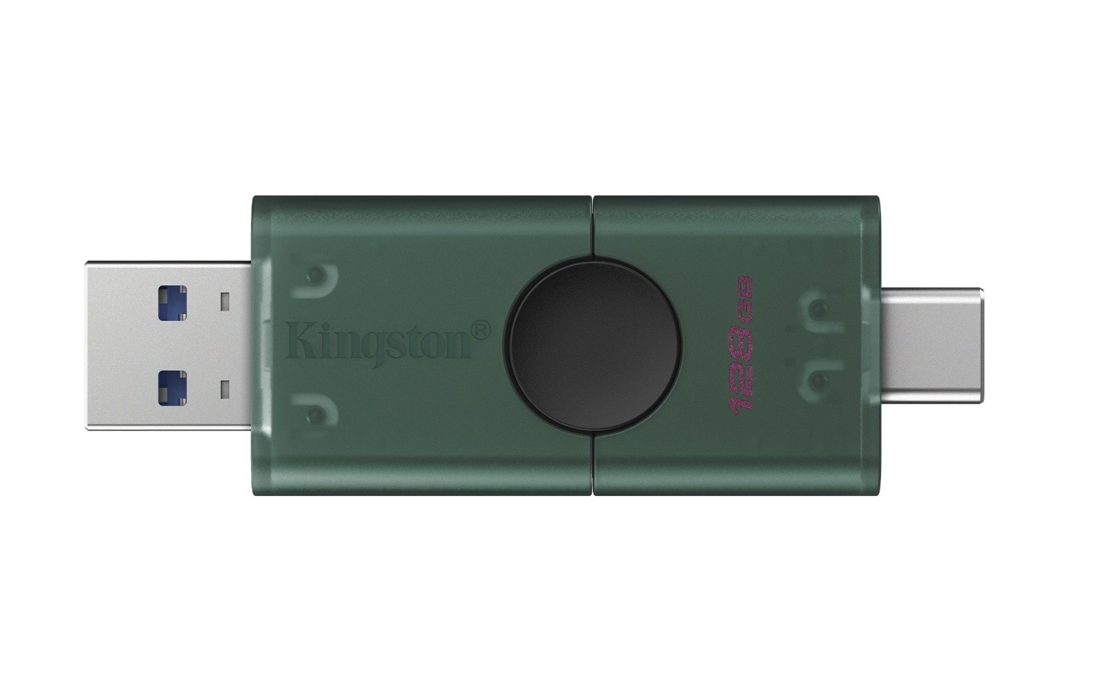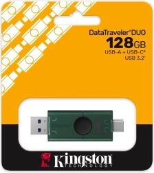 The practical dual-ended KINGSTON DataTraveler Duo G2 flash drive with 128 GB capacity combines USB‑A and USB‑C connectors in one body. It offers a fast USB 3.2 Gen 1 interface, a durable build, and two sliding caps that protect the connectors and never get lost. Ideal for easy and fast file transfers between laptops, desktops, and mobile devices with USB‑C. Universal compatibility, compact size, and KINGSTON reliability for everyday use.