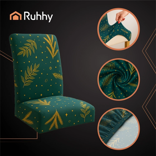 Stylishly decorate your dining room for the holidays and protect chairs from wear. The green RUHHY Christmas covers, made from a stretchy polyester and spandex blend, perfectly adapt to the shape of most standard chairs, are not see-through, hide imperfections, and thanks to the firm elastic band stay in place without slipping. The set of 6 lets you quickly unify the look of the whole table and create a magical Christmas atmosphere.