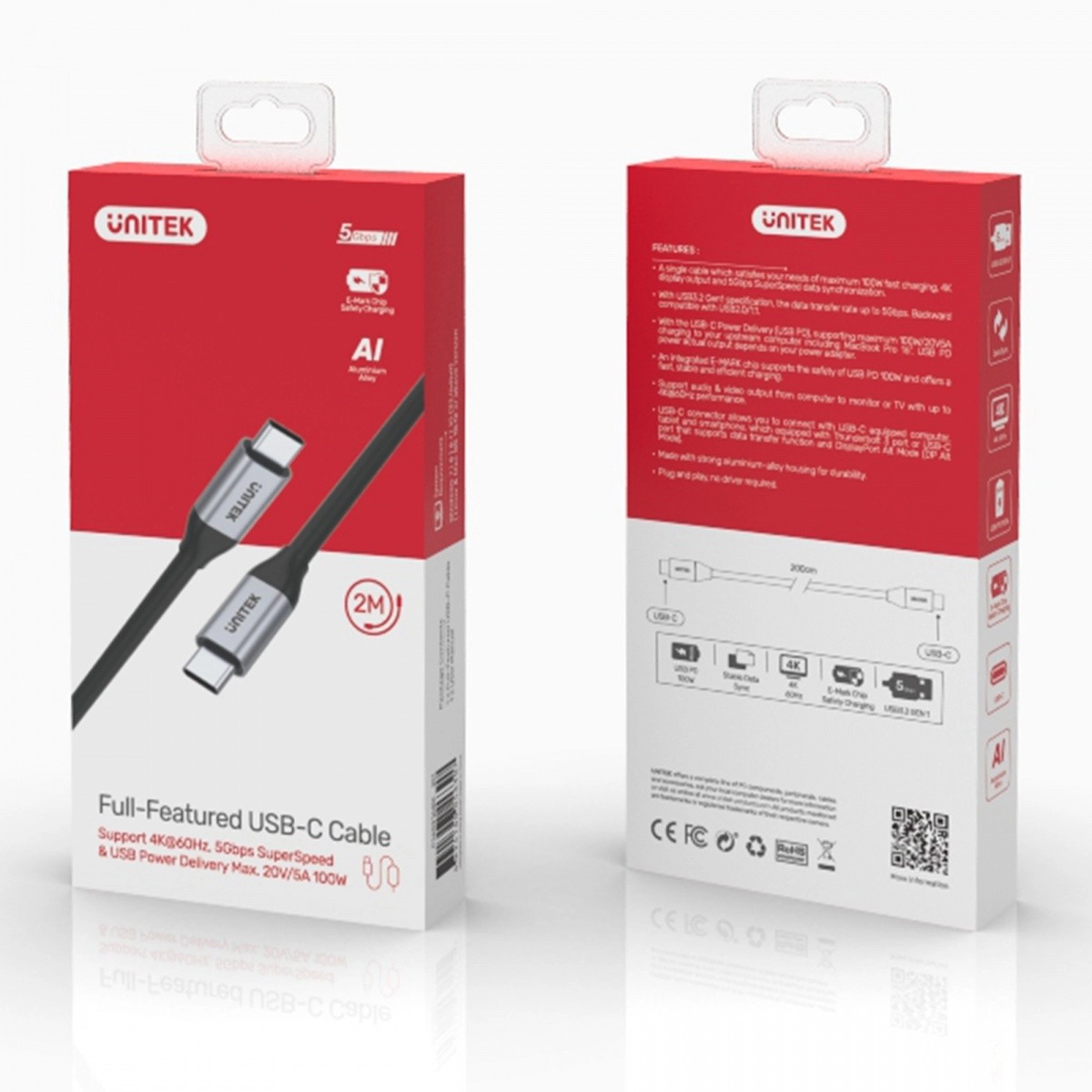Durable aluminum ends and an integrated E‑MARK chip automatically select safe current parameters, so charging and syncing are fast and reliable. The 2 m length provides comfortable reach at home, in the office, and on the go—from connecting a laptop to a 4K monitor to linking a phone to a TV.