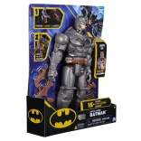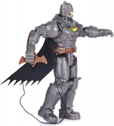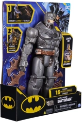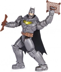 The figure is intricately detailed, with grey armor, a yellow bat emblem, and a black cape. Suitable for children aged 4 and up, it guarantees hours of entertaining play.